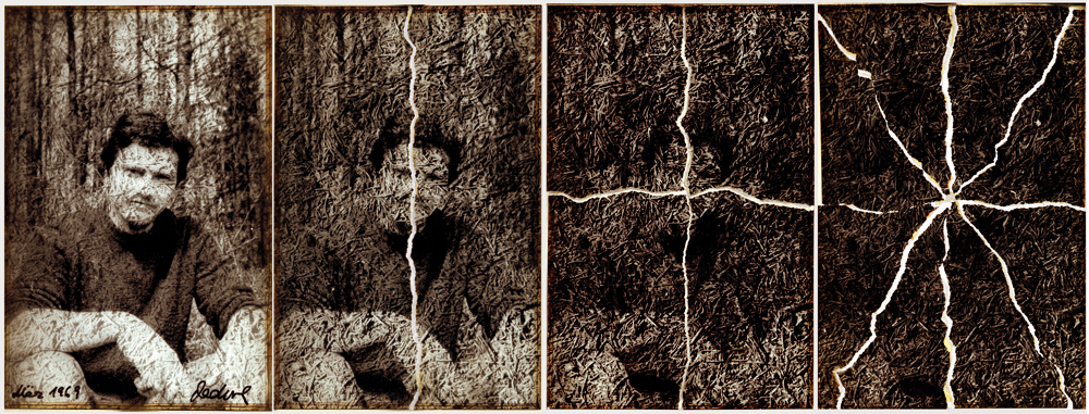 LEBEN IM FICHTELHAUFEN, vier Fotos , methodisch zerrissen,